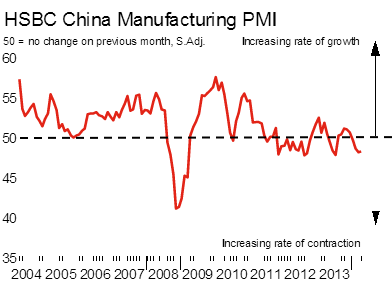 While most of the debt remains denominated in RMB and therefore China is unlikely to experience a significant currency crisis in a debt crisis, the global financial system remains vulnerable as recent BIS data shows nearly USD 1 trillion in external foreign currency denominated debt. Note that the data only goes to March 2013 and the reading was USD 880 billion. At that rate of increase, it would not be a big leap to imagine that total external foreign currency debt has topped USD 1 trillion today.