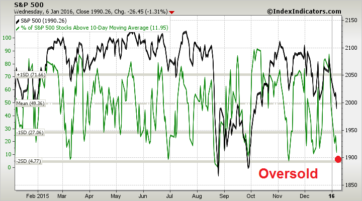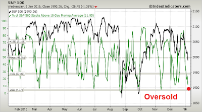 - The market was oversold on % of stocks over the 10 day moving average based on the breadth charts from IndexIndicators;