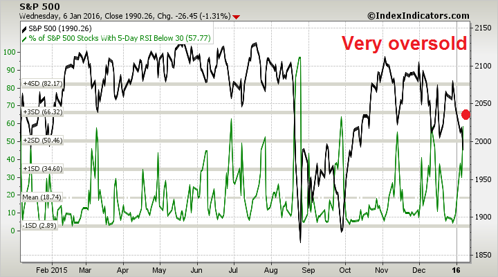 Other breadth measures, such as the % of stocks with RSI less than 30, is also at an oversold extreme: