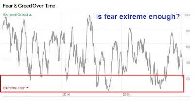 As well, the CNN Money Fear and Greed Index is nearing the top of its capitulation zone where durable bottoms have been found in the past.