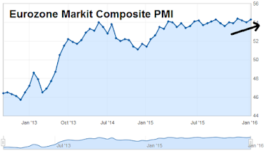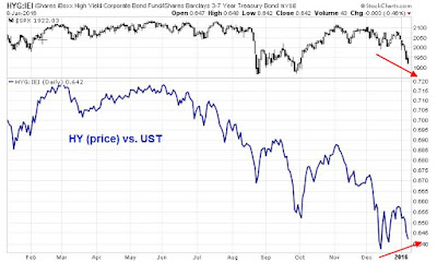 The bad news is, the downturn in coincident data is now so drastic that I suspect we are going to get a negative GDP print either for Q4 2015 or Q1 2016. Meanwhile, there are some interesting things happening at the margins of the data. My suspicion is that we are getting close to the longer term bottom in the commodity collapse, and it is interesting that aside from oil, industrial commodities did not make a new low this week. The decline in wholesale inventories is the first sign that a liquidation may be beginning (one reason why I think we may get a negative GDP print). The further big pulse down in rail transport may also be a sign of a beginning of inventory liquidation via a big downturn in new orders (also shown in the ISM manufacturing release). Tax withholding for December wobbled a little bit, and YoY Real M1 decelerated to a new 5 year low. On the other hand, lower mortgage rates will give a little boost to the housing market. I still see this as a global trade driven inventory correction rather than the onset of a recession. Housing permits and Q4 residential investment will be particularly important when they are released later this month.