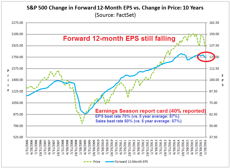 1) In the short-term, it’s the rate of change in forward EPS that matters. A rising forward EPS implies a better outlook for earnings, which is bullish.
