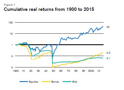 There is another level of survivorship bias that a lot of analyst neglect, namely survivorship bias at the asset class level. At the dawn of the 20th Century in 1900, most investments went into the bond market. Stock markets were relatively immature and equity investment culture was not well developed. If you went back in time to 1900 and knew nothing about financial markets, would you necessarily put a major portion of your portfolio into what amounted to an under-developed asset class?