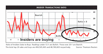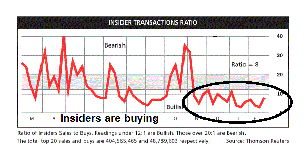 My inner investor is still constructive on stocks and he remains in accumulation mode. He is casting his lot with the “smart money” insiders, who are still doing more buying than selling (via Barron’s).