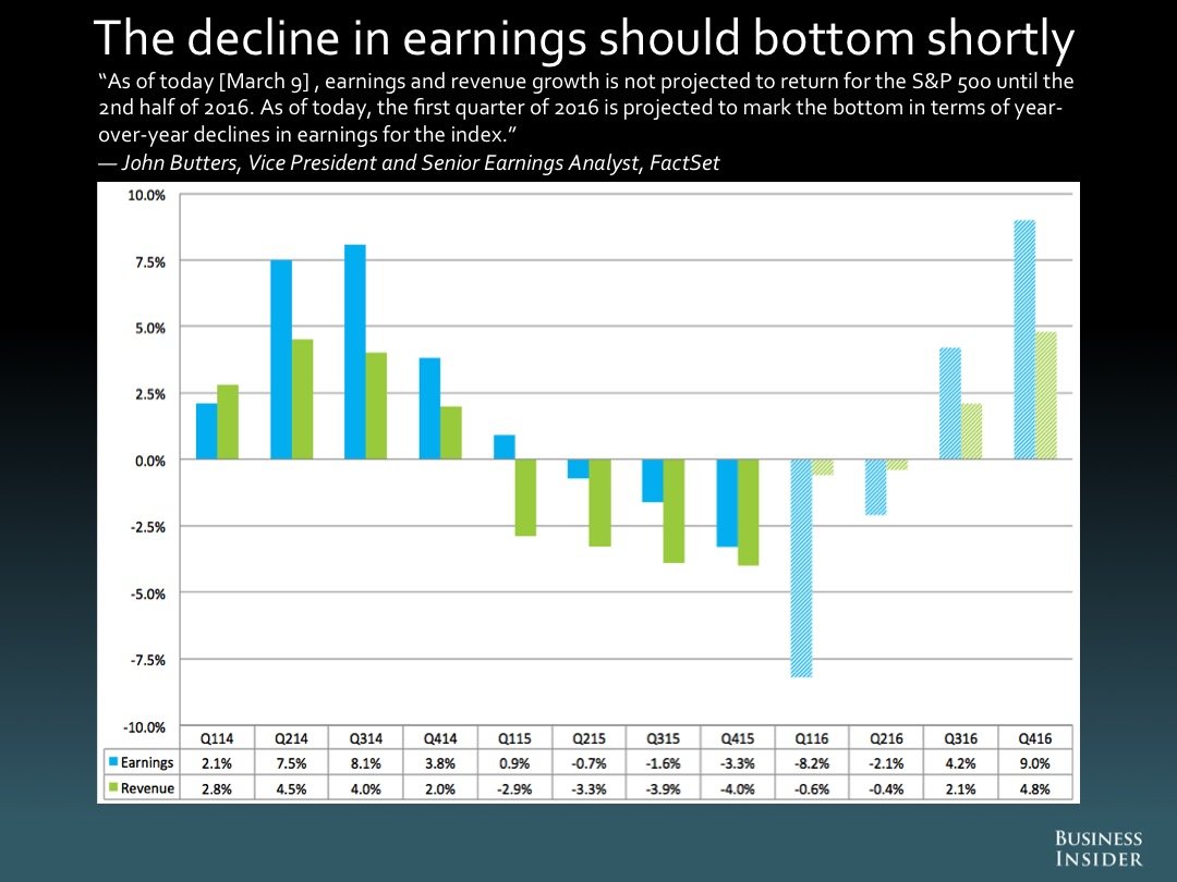 Business Insider reports that John Butters of Factset believes that a cyclical upturn is just around the corner. In other words, earnings growth have gotten so bad that the outlook is good:
