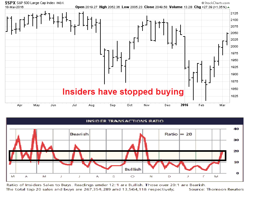 Insiders are pulling back from their pattern of aggressive buying. With the caveat that weekly readings are noisy, the latest update of insider activity from Barron’s indicates that this group of “smart investors” have toned down their purchases of their own company`s stock that has been in place since last November. Their behavior is an eerie repeat of their activity seen during the last stock market rally.