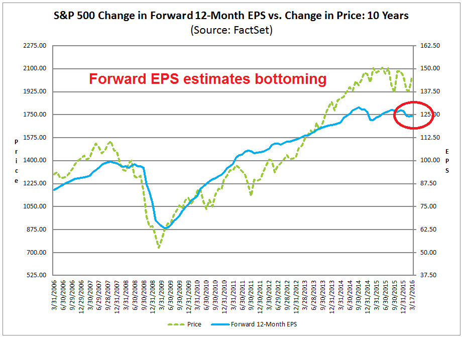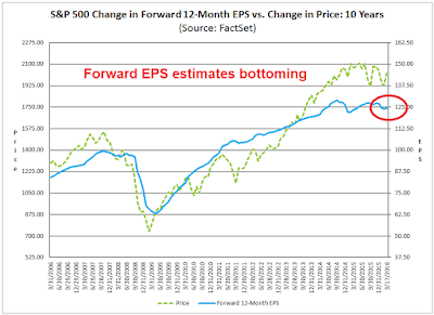 Indeed, his latest update shows that forward 12-month EPS bottoming and starting to turn up again.