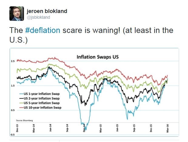 Signs of global reflation and improving risk appetite are everywhere. We are also seeing the reflationary theme evident in other asset classes. Jeroen Blokland recently pointed out that deflationary fears in the fixed income markets have receded, at least in the US.