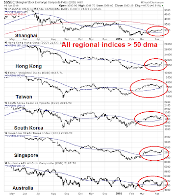 In the meantime, China is seeing the upleg of the latest min-cycle. The stock markets of China and her major Asian trading partners are all undergoing a cyclical revival. All regional indices have rallied above their 50 day moving averages.