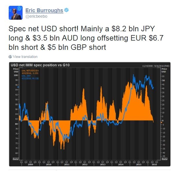Hedge funds have reversed out of their crowded long in the USD and they are now slightly short.