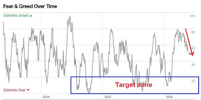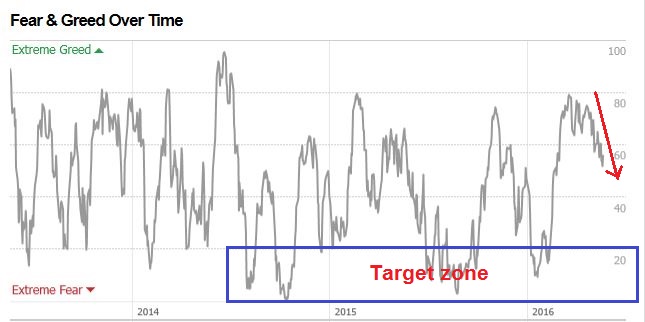 In the meantime, my inner trader is waiting for further weakness and signs of capitulation and oversold conditions before fully covering his short position. The readings on short and intermediate term sentiment models can be described as either neutral or slightly bearish, but not at extremes. The CNN Money Fear and Greed Index is one example out of many.