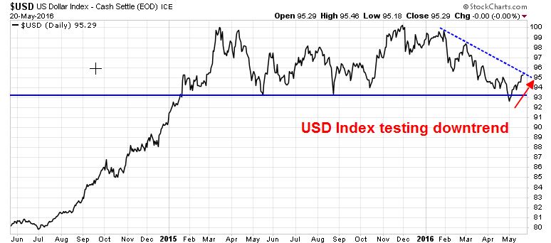 As well, the Fed officials have indicated that the USD is an important barometer for its monetary policy. A rising dollar has the dual effect of tightening monetary policy for the Fed and it could be viewed as a sign of secular stagnation, as there is much concern at the Fed over the ability of other major central banks like the BoJ and ECB to escape the deflation trap. As the USD Index has recently bounced off an important support level and started rally, its continued strength would be a factor for FOMC decision makers to put a rate hike on hold.