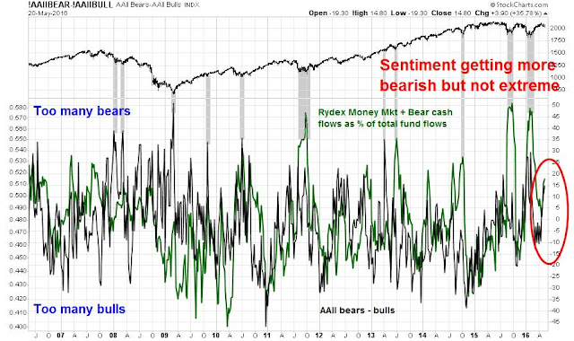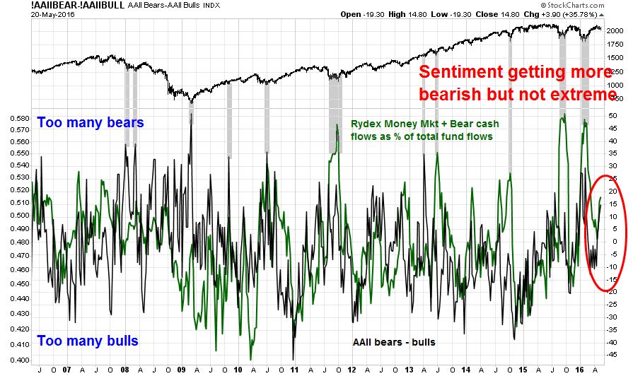 Rydex and AAII sentiment data are also showing similar readings – slightly bearish, but nowhere near a crowded short.