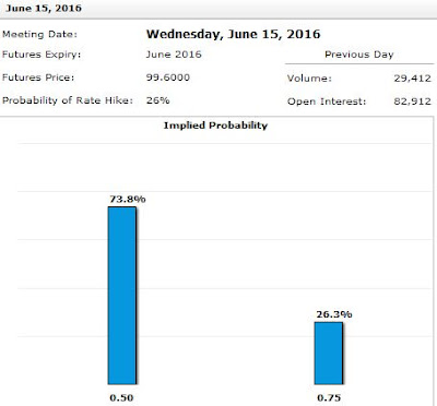 Still, the probability of a June rate hike is still relatively low. The latest reading from the CME Group Fedwatch tool shows an implied probability of 26% of a June rate hike. If they are serious about raising rates in June, watch for continued Fedspeak to raise that probability to at least 50-60%. We are not there yet.