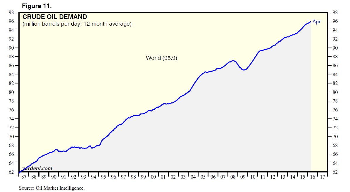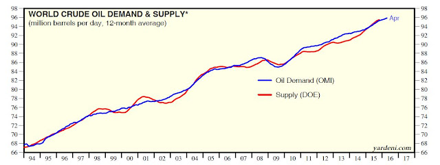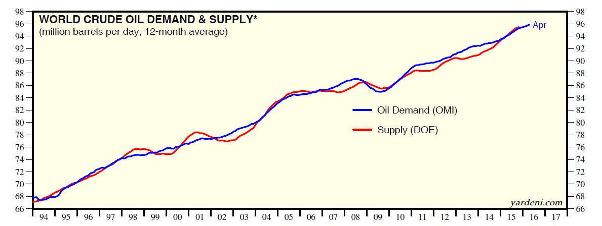 How plausible is the Hot Potato Theory? Notwithstanding the current market conditions, take a look at this multi-decade chart of oil supply and demand from Yardeni Research. Past history shows that demand has kept on growing.
