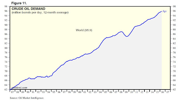 Going back to 1987, oil demand has risen more or less steadily with minor interruptions from recessions. One of the underlying assumptions of the Hot Potato Theory calls for demand to start rolling over.