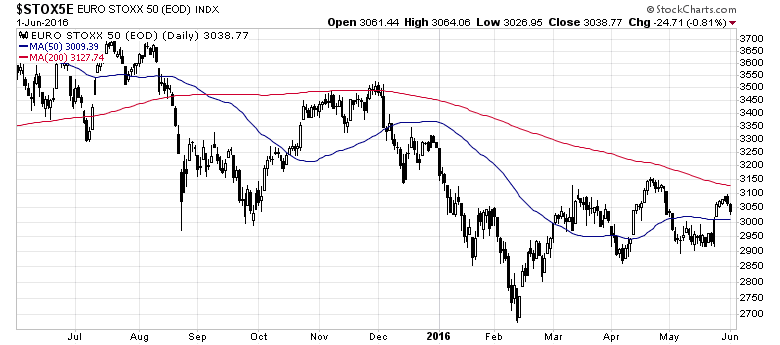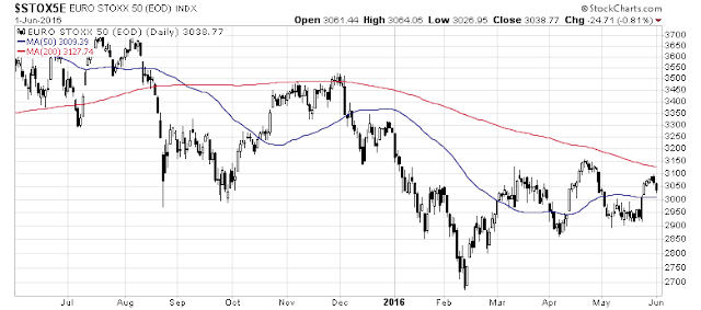 The Euro STOXX 50 is rising as well. While it has cleared its 50 dma, it has yet to breach its 200 dma.