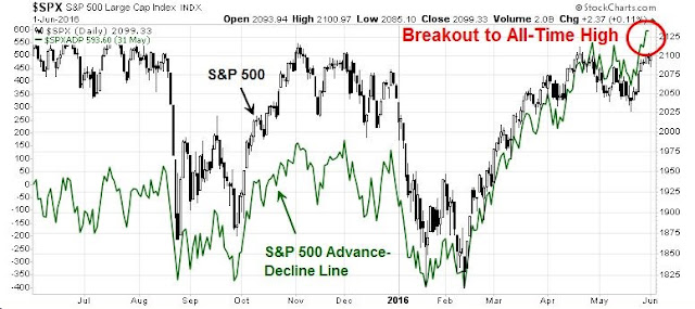 I recently highlighted this tweet from Leuthold Group and the SPX has indeed closed May above the key 2062 level. If history is any guide, stock prices should move higher from here.