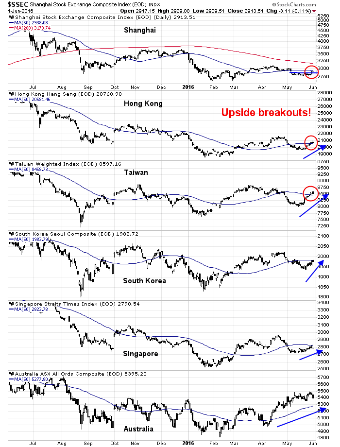 The Chinese market and the markets of its major Asian trading partners are showing signs of healing. All Asian markets are in minor uptrends and the Shanghai market rallied above a key resistance level two days ago.