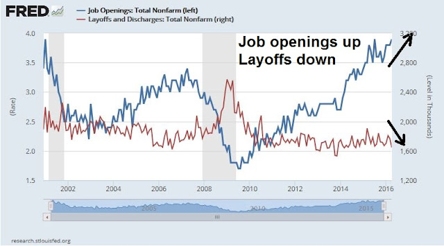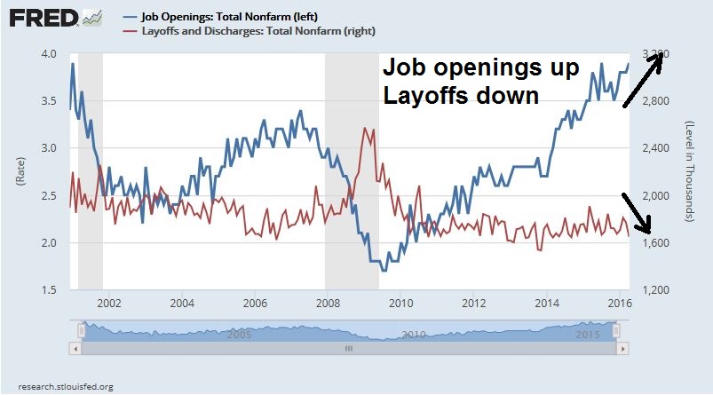 The JOLTS report was helpfully released last week, which provided another window into the labor market. If the job market is so bad, can someone tell me why job openings are rising and layoffs are falling?