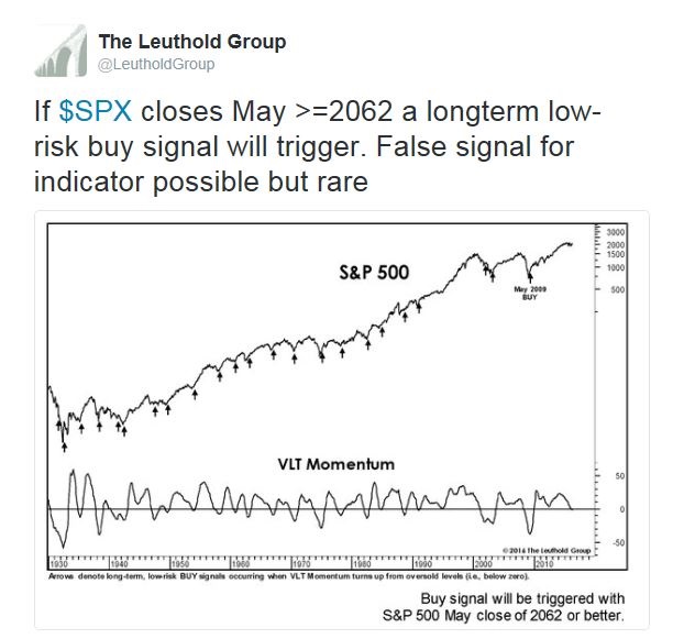 The other bullish signal comes from the VLT Momentum Indicator, which is a momentum signal using long-term monthly data developed by Coppock. I am indebted to Leuthold Group who alerted me to the potential setup in May. Indeed, SPX closed above 2062 in May, which triggered a VLT Momentum Indicator buy signal.
