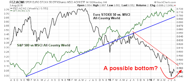 I have a suggestion for value oriented investors who are uncomfortable with my market blow-off thesis for US equities (see How to get in on the ground floor of a market bubble and Get ready for the melt-up). What about buying Europe?