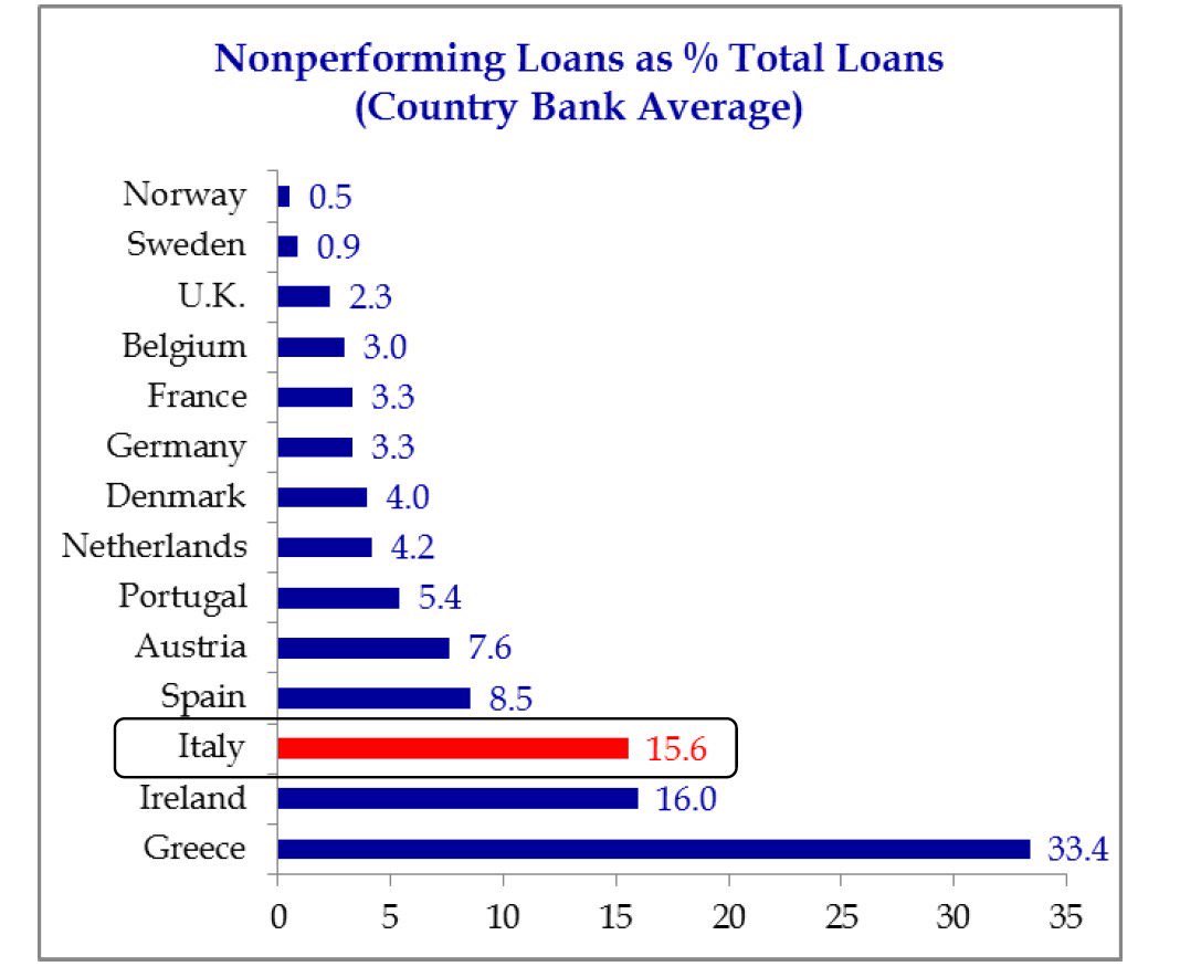 Then, we have the Italian banking crisis. The Italian banking system is simply burdened with too much non-performing loans (NPL). Here is how FT Alphaville explained it: