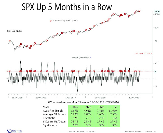 The fundamental and macro backdrop for the surge in equity prices since the Brexit panic bottom has been a combination of a growth surprise, which I have documented above, and wrong-footed positioning, where both institutions and individuals were collectively caught off-side with overly defensively oriented portfolios. Viewed through a technical analysis lens, the market is benefiting from a powerful surge of price momentum as a result of investors playing catch-up. Such episodes have tended to resolve themselves bullishly in the past.