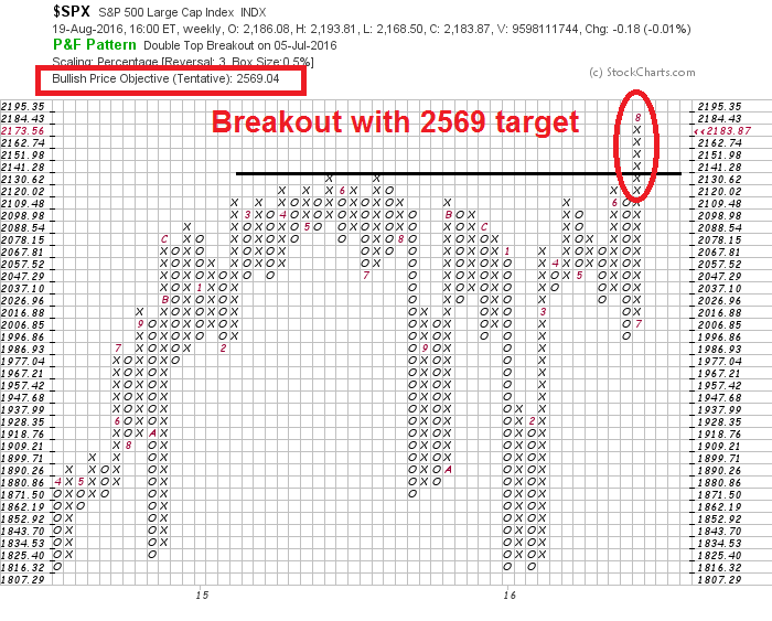 I have found point and figure charts to be particularly useful tools because they filter out a lot of the price noise, especially when markets trade sideways in a tight range as they have recently. As an example, my recent post that featured a SPX weekly point and figure chart got a lot of attention (see Be patient). Since I performed that analysis, not much has changed. The latest weekly chart pattern remains unambiguously bullish on an intermediate term basis. It also tells the bullish story of powerful price momentum, TINA (There Is No Alternative) and FOMO (Fear Of Missing Out), all rolled into one.