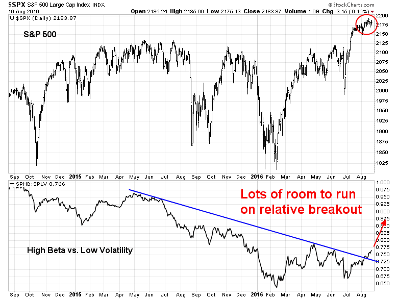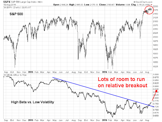 As I look forward to the week ahead, I am finding short-term market direction to be a more difficult call than usual. On one hand, risk appetite, breadth, and momentum metrics are all flashing bullish signs. The chart below depicts the relative returns of High Beta vs. Low Volatility as a measure of risk appetite (bottom panel). Risk appetite has staged a breakout through a relative downtrend and it’s nowhere near levels that indicate wild exuberance. The TINA and FOMO rally has a lot of room to run.