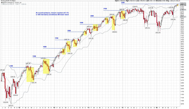 On the other hand, Urban Carmel pointed out that the stock market tends to pause when the index encounters round number resistance. As the SPX approaches the 2200 level, a pullback into the initial breakout level of 2100-2120 would not be a surprise.