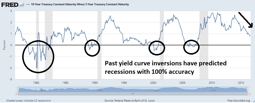 Capacity Ut rose from 2009 to a November 2014 high of 78.9 and have been trending lower since, falling to 74.9 by March 2016 and up a tad from there to 75.9 in July – that’s not even close to excess capacity on a “diminishing” path likely to impact inflation on a sustained basis. Likewise the CRB has collapsed from 313 in June 2014 to 155 in February 2016, a massive decline of over 50%, and has retraced about 26% of that decline to 196 since February – hardly the stuff of sustained inflation! It is rare indeed for sustained inflationary cost-push inflation to develop when the yield curve is still flattening. Past cycles displayed the pattern you’re talking about, but this one doesn’t. You are right to be more data dependent than just trying to fit current conditions into past cyclical behaviors.