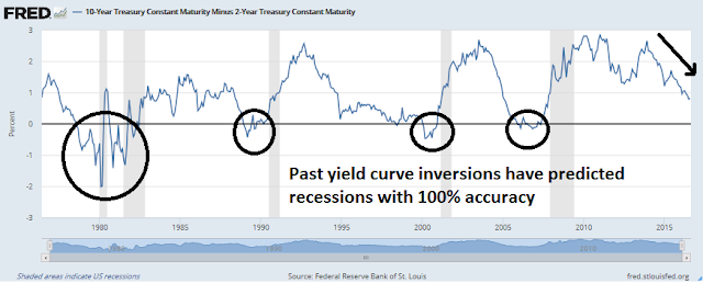 It’s a delicate balance, and I don’t have a great sense of the Fed’s reaction function to developments. In the past, they have been far more dovish than I expected. For equity investors, the most important indicator to watch will be the yield curve. A steepening yield curve, where the 10-2 year Treasury yield spread widens, will be a signal from the bond market of higher growth expectations. On the other hand, a flattening curve that inverts, or when the spread goes negative, will be a warning of recession. Right now, the yield curve is flattening, but readings are nowhere near a recession signal.