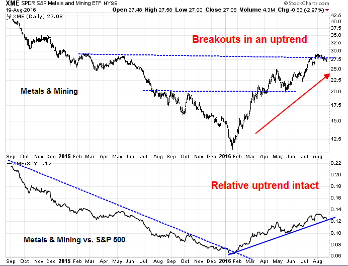Rising commodity inflation is evident from the chart pattern of the hard asset sensitive industries and sectors of the US stock market. The chart below of the Metals and Mining stocks shows that they are experiencing upside breakouts in an uptrend (top panel). In addition, these stocks are in a well-defined relative uptrend when compared to the market (bottom panel).
