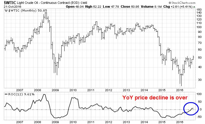 Q3 will likely the inflection point for YoY EPS growth. As the chart below shows, oil prices are no longer a drag on Energy sector earnings. Freed of this headwind, YoY earnings growth should turn positive in Q3 and accelerate into Q4 and next year.