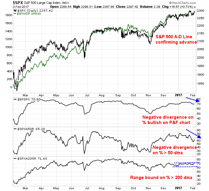 While the intermediate term investment outlook for equities looks solid, the picture is less clear for traders with a shorter term perspective. In particular, market breadth is presenting a mixed picture.