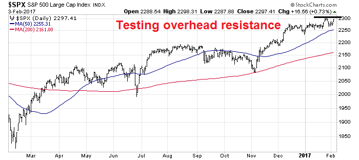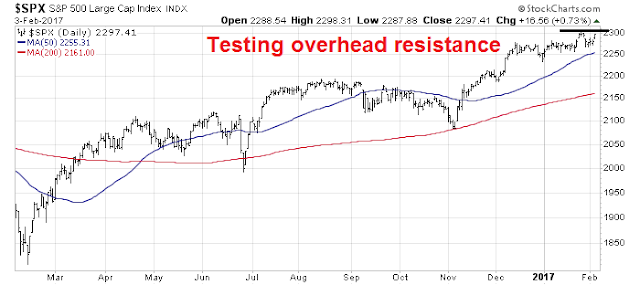 In light of the above analysis, a case could be made for the stock market to consolidate and trade sideways as it digests its post-election gains. Under such a scenario, a rolling correction is the most likely outcome. As leadership sectors weaken, other sectors rise and take up the baton of market strength. Under these circumstances, the key to market direction would be the weights and performance of weakening sectors and emerging sectors within the index.