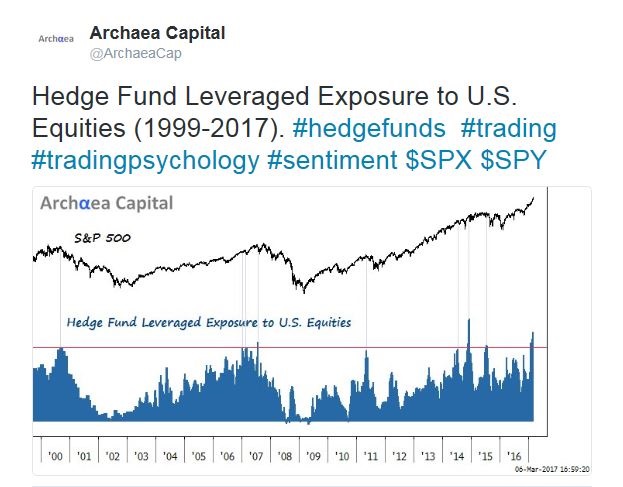 Finally, Archaea Capital recently observed that the implied equity exposure of hedge funds show a crowded long reading.