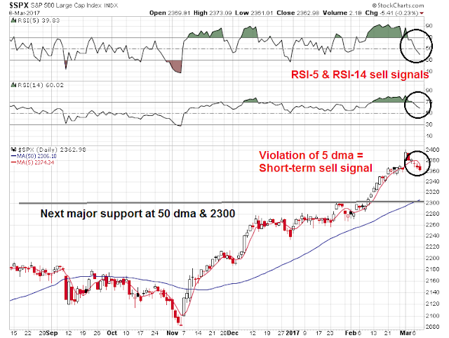 I expected new political problems would cause the markets to fall here. Now that Trump and the GOP are actually pursuing legislation in the form of changing Obamacare, there are huge factions aligning themselves against each other within the Republican representatives.