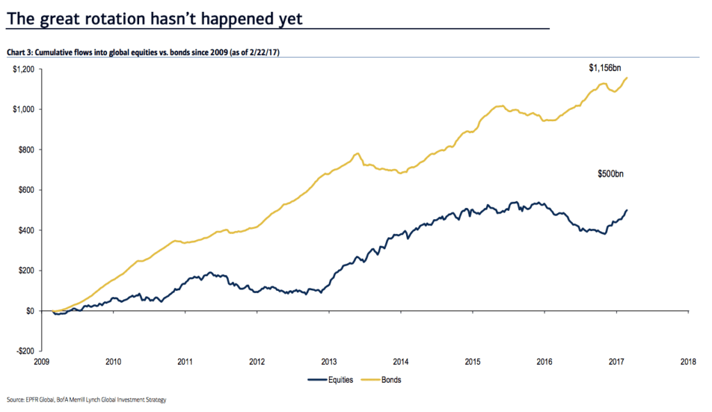 As this chart from BAML indicates, a rising inflation environment would be beneficial for asset classes like gold and emerging market equities.