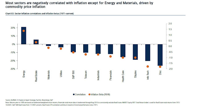 At a sector level, the sectors most exposed to inflation are energy, real estate, and materials. The inflation beta of the US materials sector has been dampened by a lack of major mining companies in the US, such as BHP, Rio Tinto, etc., and the presence of downstream companies such as chemicals, which would negatively affected by rising material costs as inputs.