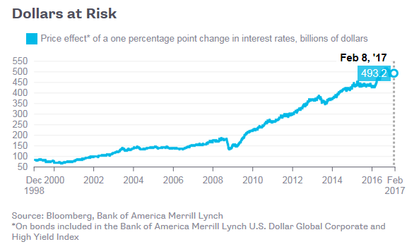 The chart below depicts the sensitivity to a 1% increase in rates. Monetary policy in Washington is in effect raising the risk of an emerging market debt crisis.