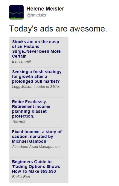 At an anecdotal level, Helene Meisler observed that the mood is not what you find at market lows. Here is one example.