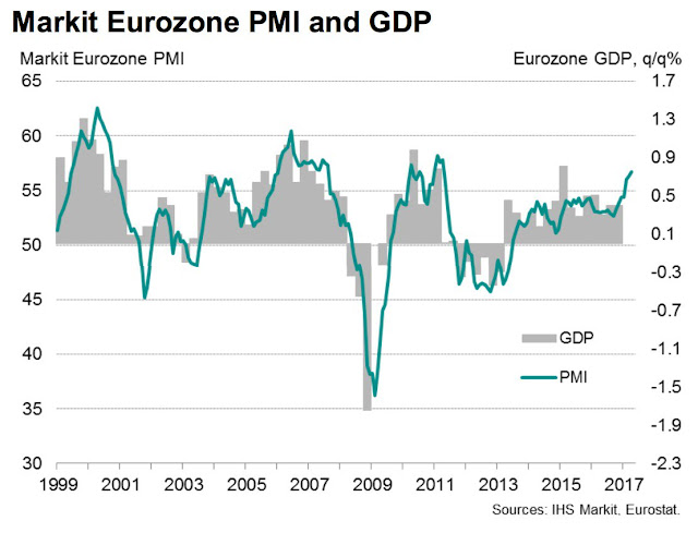 In the meantime, eurozone PMI has risen to a six year high and Bloomberg reported that French companies are adding staff and shrugging off election uncertainty. The view from the ground in France doesn’t sound too bearish to me.