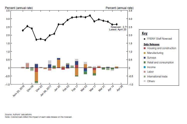 By contrast, the New York Fed’s nowcast has been relatively steady, with an estimate of 2.7%.