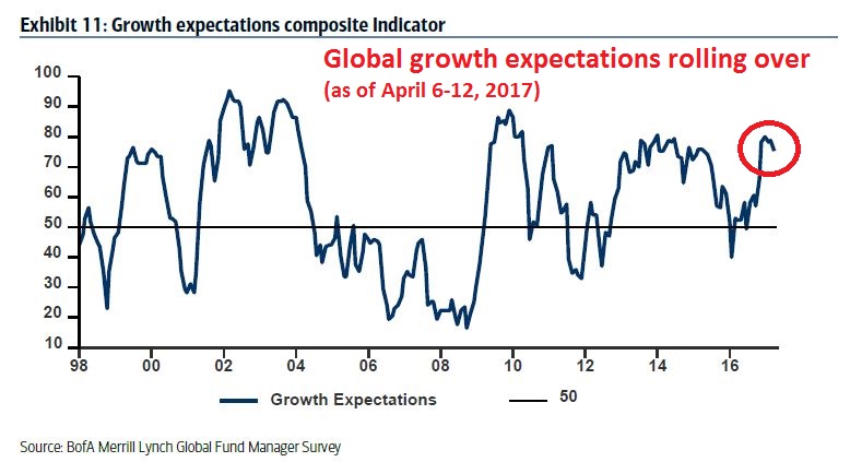 These concerns about the reversal of the global reflation trade are not new. The latest BAML Fund Manager Survey, which was done about a month ago, reveals that institutional managers were already concerned about a global growth slowdown.