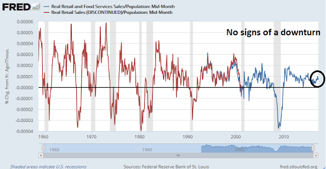 In addition, recessions are characterized by a slowdown in consumer spending. American consumer spending continues to be healthy.