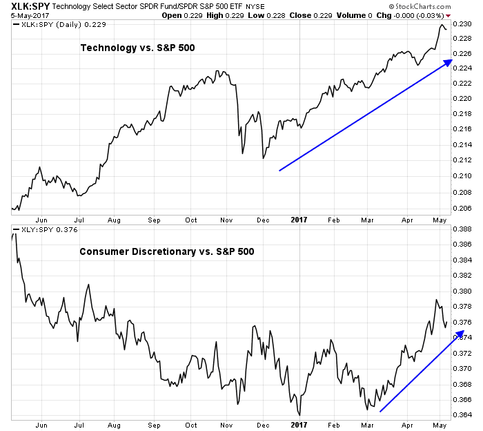 Under the current circumstances, long-term investors may be best served by holding sectors that exhibit market leadership, such as Technology and Consumer Discretionary stocks.