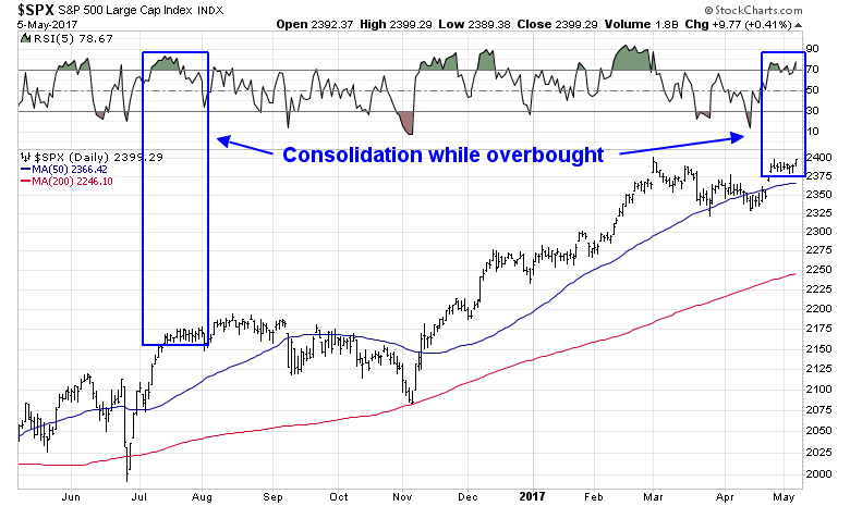 In the short term, I will be watching the market reaction to electoral results on Monday as a test of market psychology. Emmanuel Macron is likely to win the French Presidency on Sunday, which is positive news but largely discounted by the market. As well, I will be also watching the Schleswig-Holstein state election in Germany, where Angela Merkel’s CDU is leading Martin Schulz’s SPD in the polls. A CDU win would therefore be an expected result and solidify Merkel’s campaign for another term as chancellor. Will the market rally on the electoral news from Europe, or will traders sell the news?