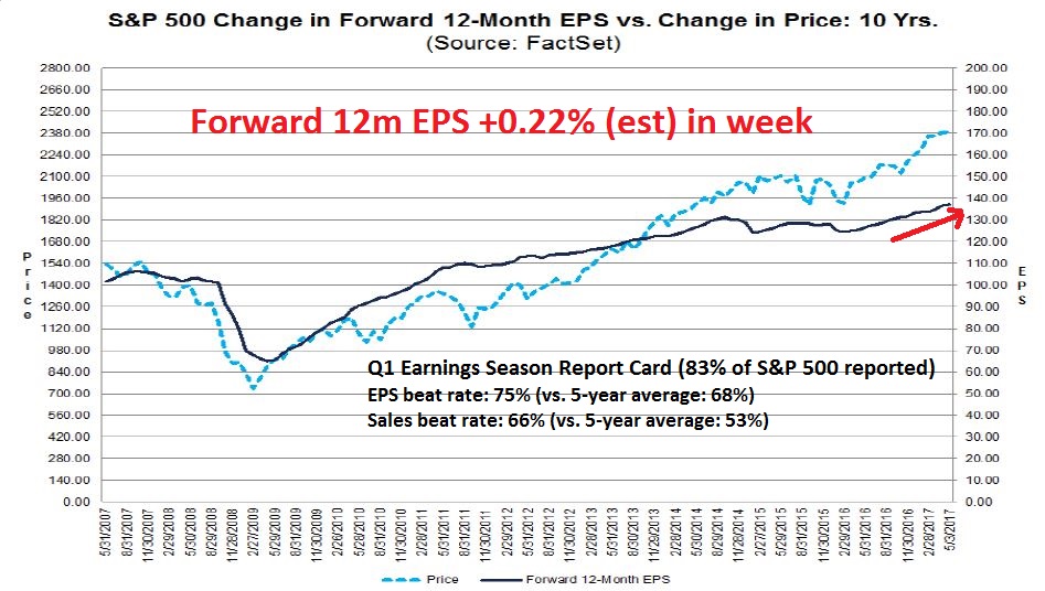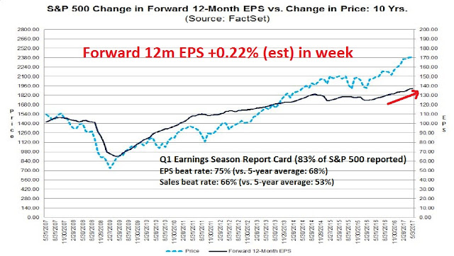 There is also lots of good news from Wall Street. The latest report card from Q1 Earnings Season remains a solid one The latest update from Factset shows that both the EPS and sales beat rates are above average. Forward 12-month EPS estimates are continuing to rise.